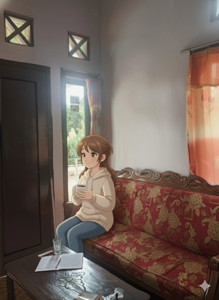 Setiap rumah memiliki ceritanya sendiri. Bagi sebagian orang, kenyamanan terletak pada luasnya ruangan atau kemewahan perabotan. Namun bagi saya, tempat ternyaman di rumah justru berada di sudut kecil yang sederhana pojok ruang tamu di dekat pintu yang menghadap ke taman.