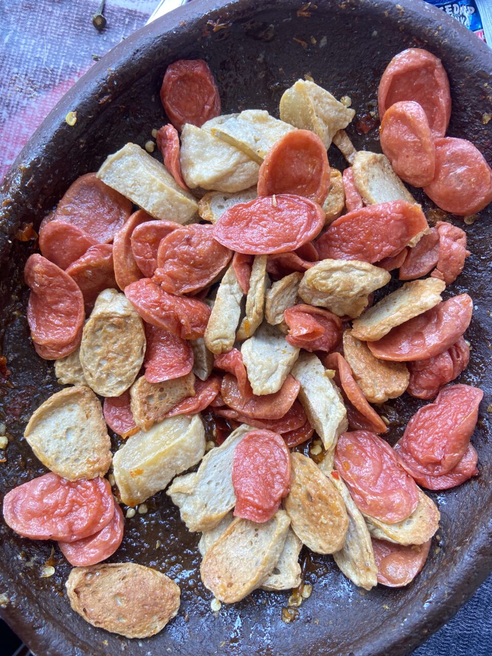 Meskipun zaman semakin modern dan berbagai makanan cepat saji bermunculan, jajanan tradisional seperti bakso goreng dan sosis goreng tetap memiliki tempat istimewa di hati masyarakat. Gambar tersebut memperlihatkan olahan sederhana namun menggugah selera—potongan bakso dan sosis yang digoreng hingga kecokelatan, kemudian dibumbui dengan sambal khas yang pedas dan gurih.
