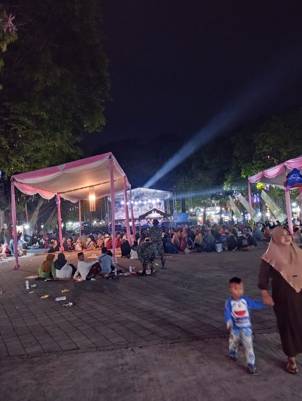 Orang-orang khusuk kepada acara, menyimak rangkaian acara pada malam itu. Di hiasi terangnya sinar bulan, dan ramainya jalan Kota Kraksaan.