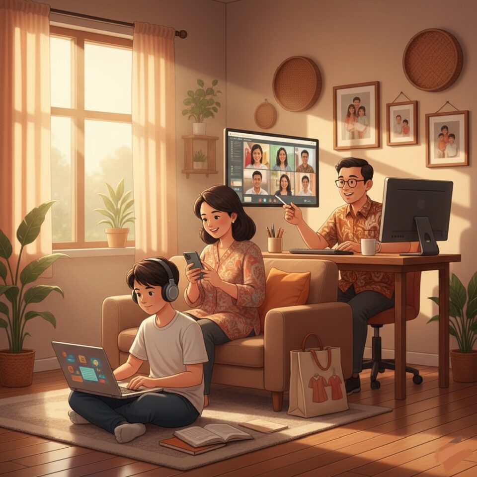 Di pagi hari yang sibuk, seorang siswa sekolah menengah menyalakan laptopnya, membuka platform pembelajaran daring, lalu bergabung dengan kelas virtual. Sementara itu, ibunya di ruang tamu sedang berbelanja kebutuhan rumah tangga melalui aplikasi daring, dan ayahnya memantau rapat kerja lewat video conference. Semua kegiatan itu terjadi di bawah satu atap, disatukan oleh satu hal: teknologi.