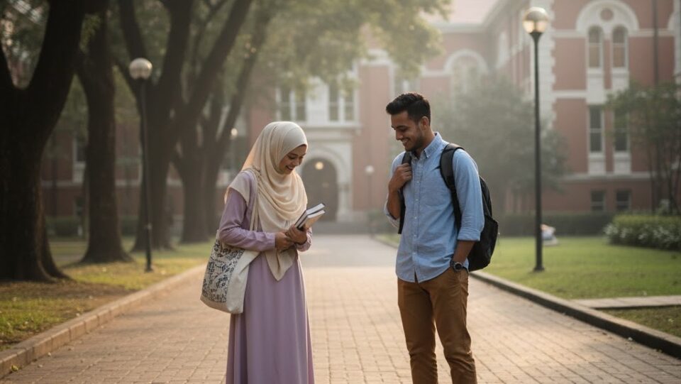 Mereka mulai berjalan bersama menuju kelas pengenalan, berbagi cerita tentang jurusan, tempat asal, dan hal-hal remeh yang terasa menyenangkan hanya karena dibicarakan berdua. Ada rasa nyaman yang tidak diumumkan, tapi terasa diam-diam di antara langkah kaki.