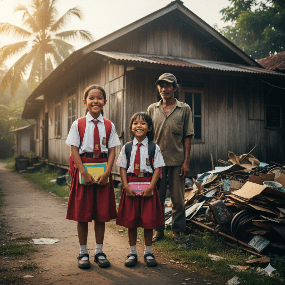 Kini, setiap pagi kedua putri itu berangkat dengan penuh semangat. Meski rumah mereka sederhana, semangat belajar tak pernah surut. Dua anak itu punya mimpi besar. Sang kakak ingin menjadi guru, sementara adiknya bercita-cita menjadi dokter. Mereka ingin membalas perjuangan orang tua dan membuktikan bahwa hambatan bukan penghalang untuk mencapai masa depan. Kisah dua gadis kecil ini memberi pesan bahwa setiap anak berhak mendapat kesempatan belajar. Senyum mereka menjadi pengingat bahwa pendidikan mampu membuka jalan keluar dari kesulitan. Dari balik tumpukan rongsokan, lahirlah harapan yang tak pernah padam.
