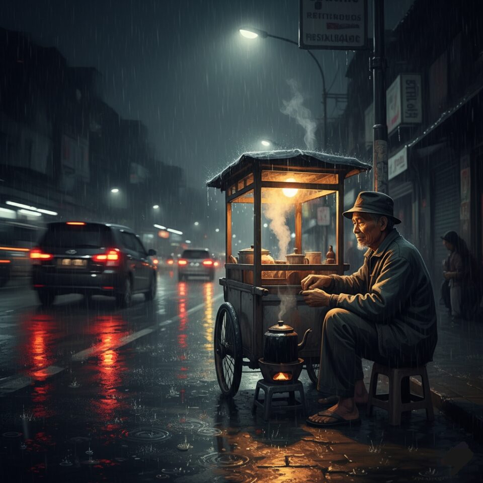 Malam kian larut. Hujan mulai turun, perlahan. Pak Jafar menutup gerobaknya dengan terpal lusuh. Besok, ia akan kembali. Dengan api kecil di tungkunya, dan harapan yang tak pernah padam.